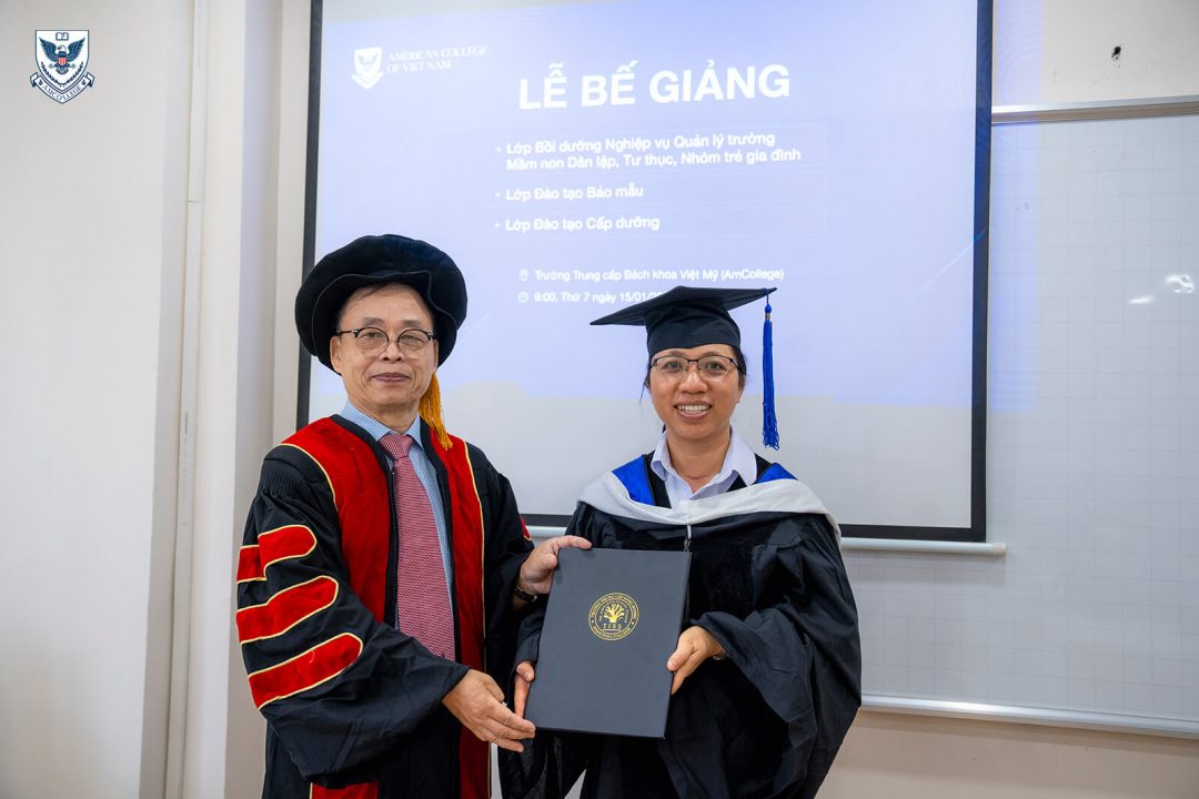 AmCollege tổ chức lễ bế giảng và trao chứng chỉ tốt nghiệp cho các học viên lớp Quản lý mầm non, Đào tạo bảo mẫu, cấp dưỡng
