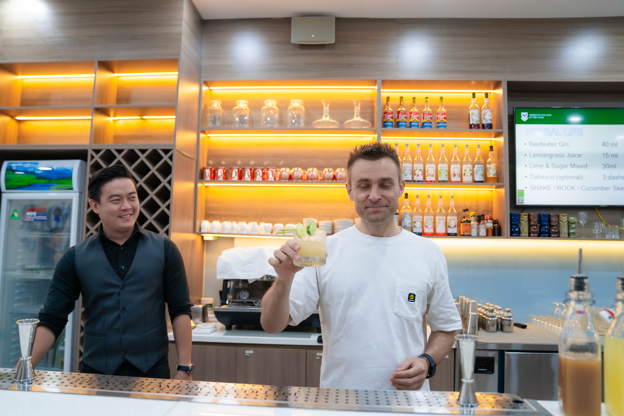 Sự kiện đã thu hút hàng chục bạn trẻ yêu thích pha chế tham dự. Buổi workshop diễn ra trong không khí nhộn nhịp và tràn đầy tiếng cười bởi sự hài hước và gần gũi của thầy Cao Bảo Nguyên – Trưởng khoa Pha chế tại AmCollege. Tại đây, thầy Cao Bảo Nguyên đã giới thiệu cũng như hướng dẫn các bạn thực hiện món thức uống có hương vị độc đáo lại dễ tìm kiếm nguyên liệu mang tên Herbal Life.