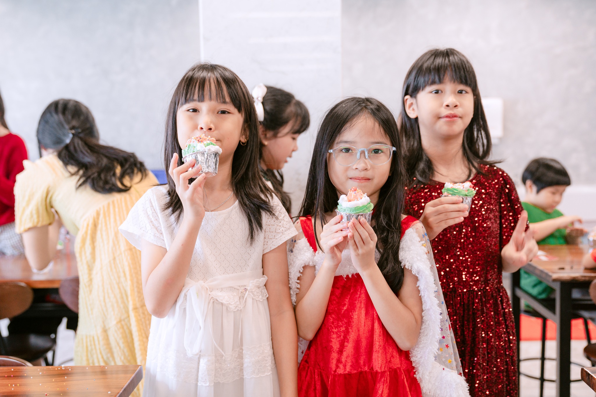 Kết thúc phiên chợ Giáng sinh, vào sáng ngày 14/12, các Jaguars tiếp tục đến với thế giới tràn ngập sắc màu qua hoạt động trang trí bánh cupcake theo chủ đề Noel. Bằng sự sáng tạo và đôi tay khéo léo của mình, các em đã tạo nên những hình thù đáng yêu cho chiếc bánh như người tuyết, cây thông hay chiếc mũ của Ông già Noel. Ngoài ra, hoạt động trang trí cây thông Noel từ kẽm nhung cũng được các em tham gia rất nhiệt tình. Với sự tỉ mỉ và kiên nhẫn, mỗi em đều làm nên cho mình những thành phẩm ưng ý nhất.