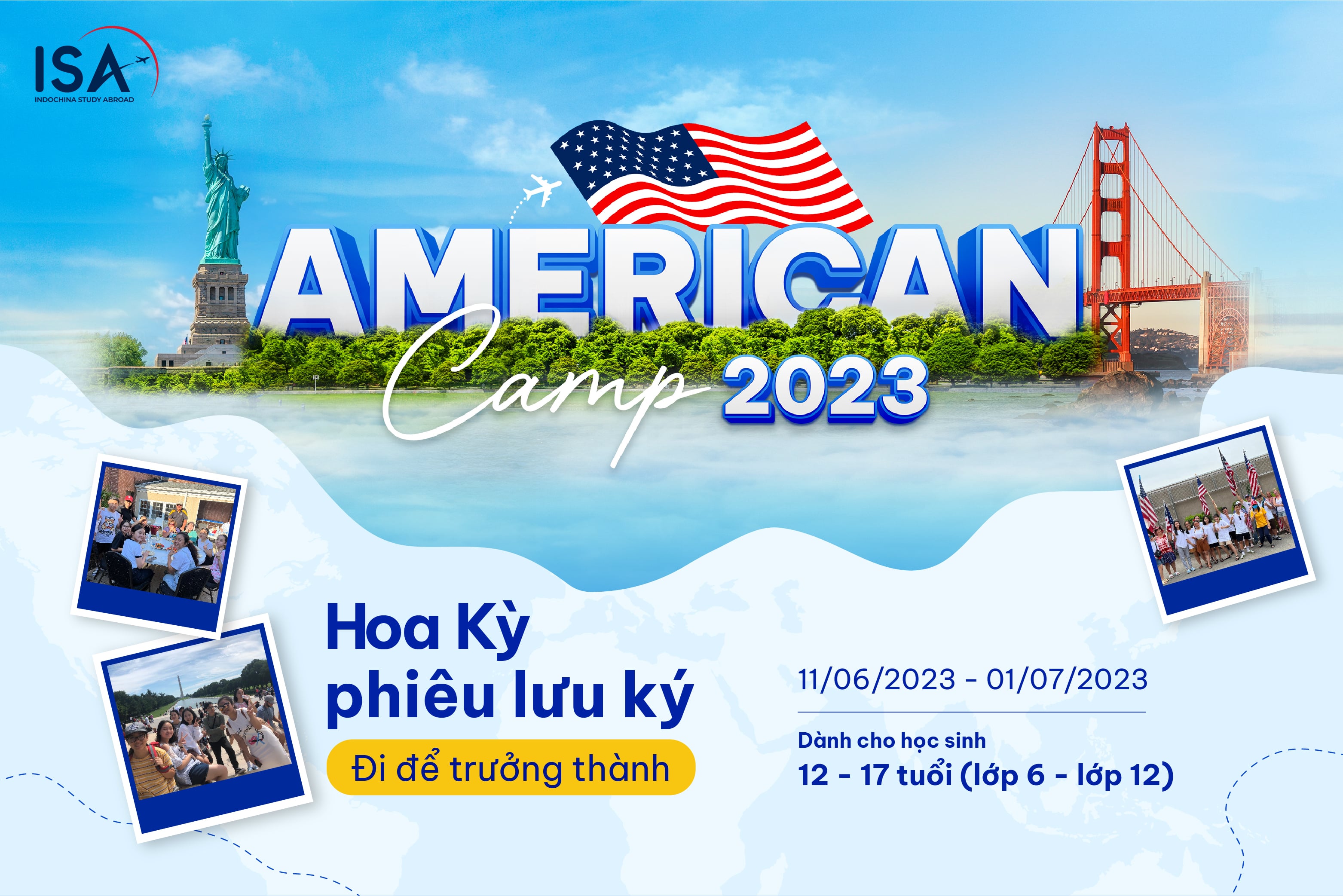 Thấu hiểu được điều đó, ISA chính thức tuyển sinh chương trình Du học hè Mỹ ngay từ hôm nay với tên gọi American Camp 2023. Chương trình hứa hẹn sẽ mang đến một chuyến trải nghiệm nước Mỹ “chất như nước cất” cho các bạn học sinh.