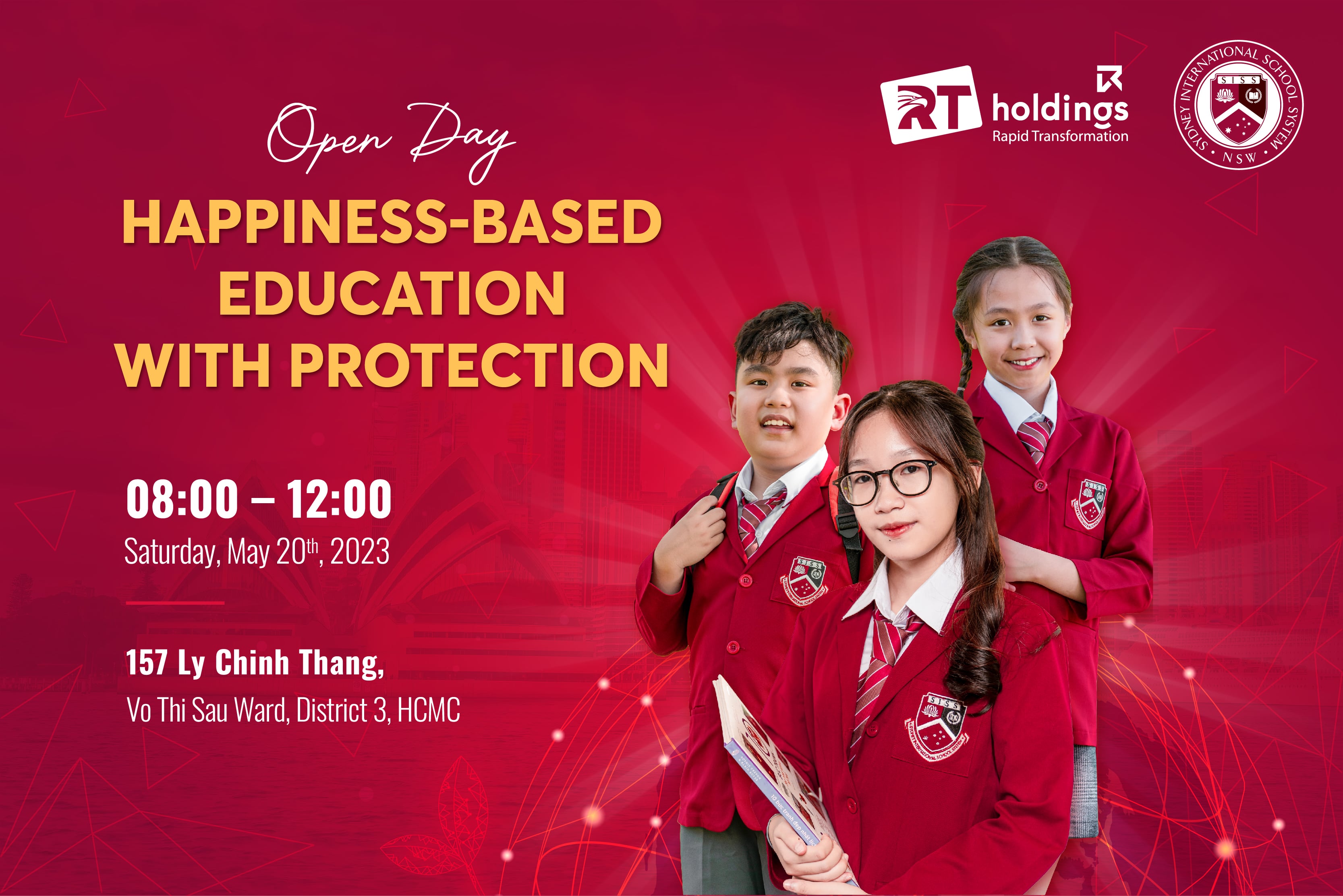 Officially welcoming the first students of the New South Wales programs in the school year 2023 – 2024, Sydney International School System (SISS) continues to organize the Open Day with the desire to meet and interact with the future students. With the main theme “Happiness-based Education with Protection”, the event will take place from 08:00 to 12:00 on Saturday, May 20th, 2023, at 157 Ly Chinh Thang, Vo Thi Sau Ward, District 3, HCMC.