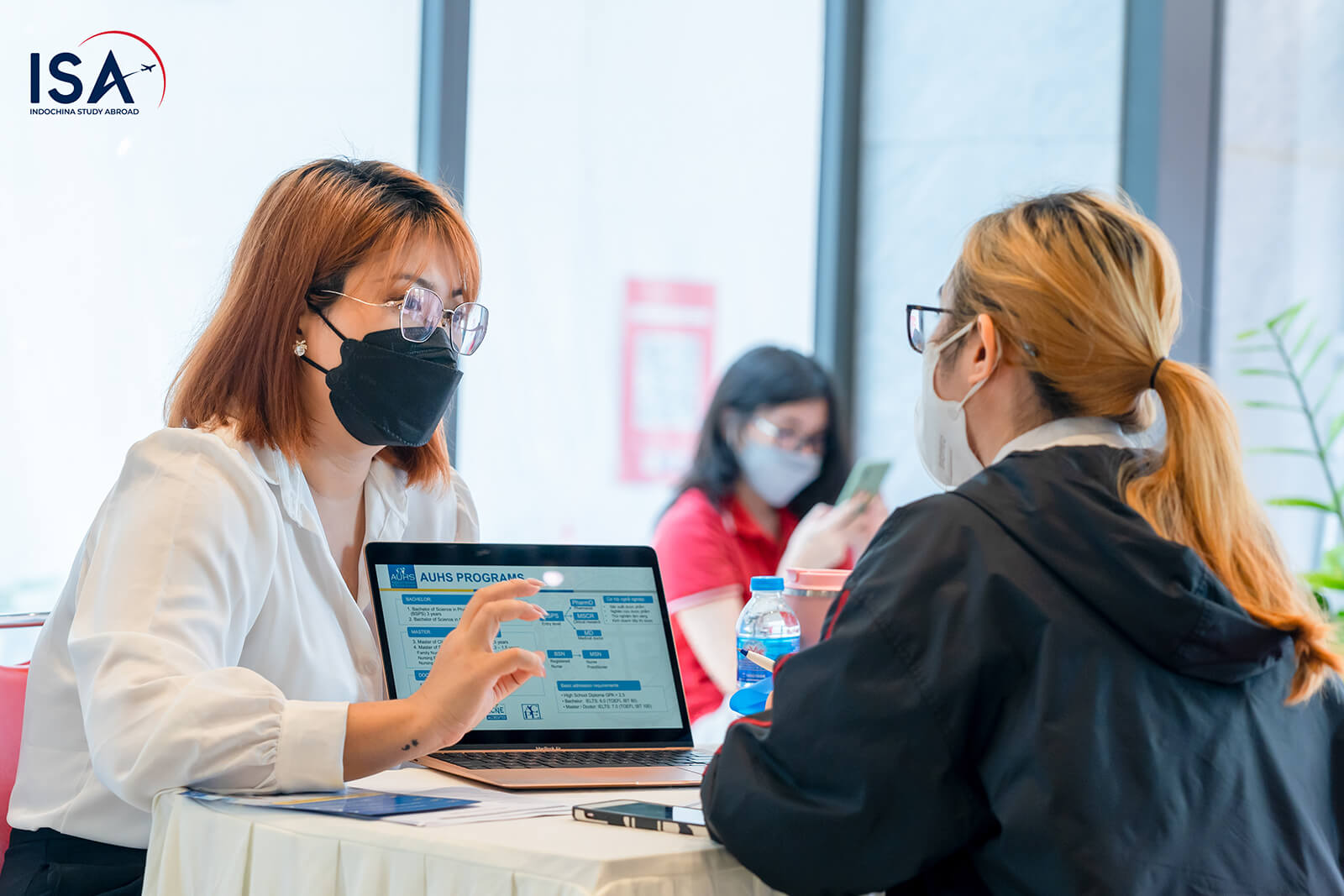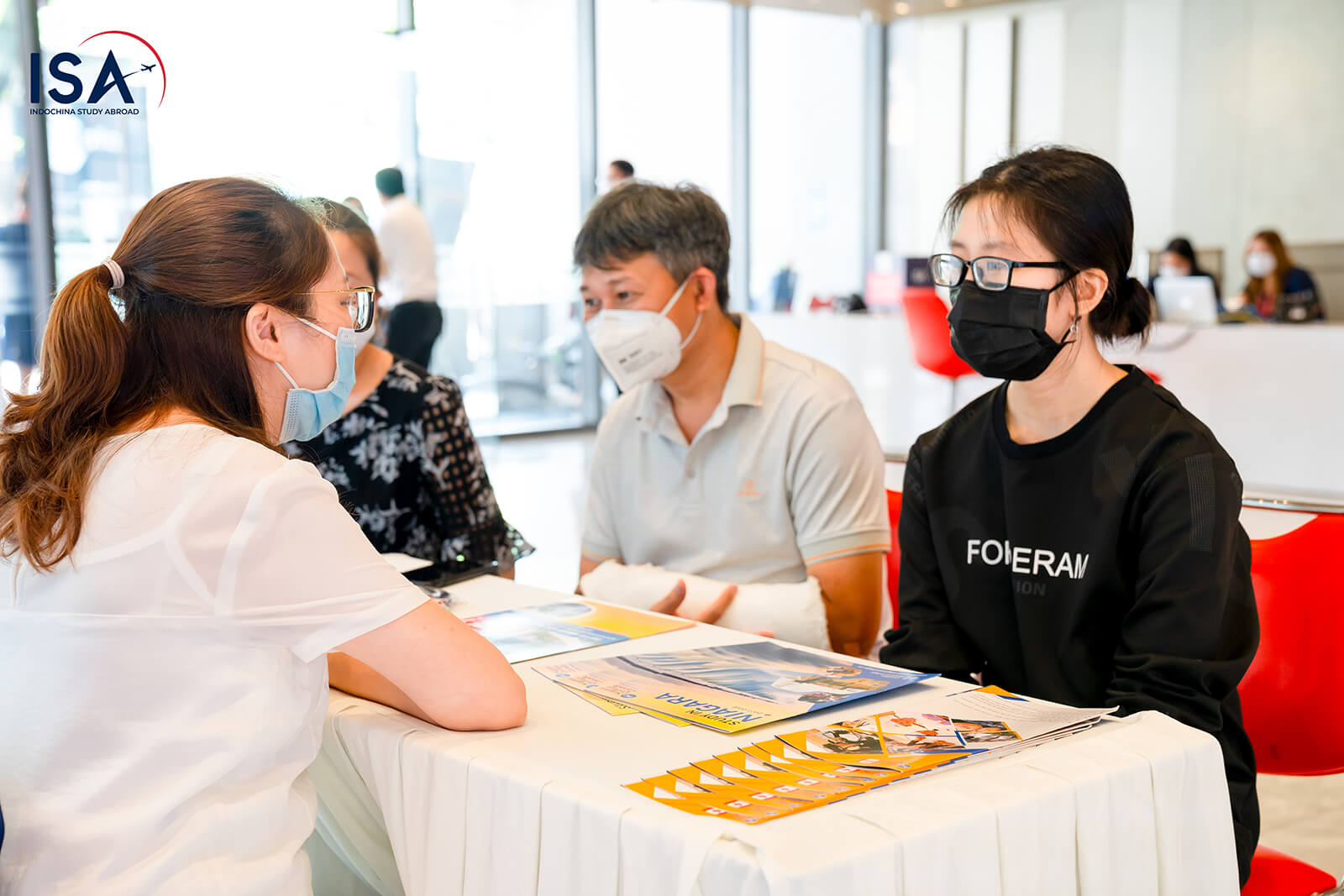 Sau khi lắng nghe những chia sẻ của các khách mời, phụ huynh và các bạn đã có dịp trao đổi trực tiếp 1:1 với đại diện các trường cũng như với chuyên gia tư vấn của Du học ISA. Trong lúc tư vấn, nhiều phụ huynh và các bạn đã bày tỏ sự quan tâm đến lộ trình du học trong năm 2022 cũng như mong muốn được tìm hiểu thêm các ngành học có triển vọng việc làm sau tốt nghiệp cao tại Mỹ, Canada, Úc. Nắm bắt cơ hội du học và nhận học bổng của các trường đại học danh tiếng có mặt tại sự kiện, một số bạn cũng đã tiến hành đăng ký nộp hồ sơ xin xét tuyển cho trường phù hợp với điều kiện tài chính, năng lực học thuật của bản thân.