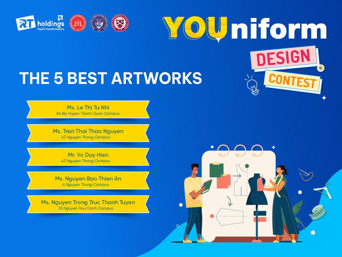 Từ ngày 12/04 – 20/4/2023, RT Holdings đã tổ chức vòng loại của cuộc thi “Thiết kế đồng phục cho Giáo viên nữ: YOUniform” dành cho tất cả Giáo viên đang công tác tại Hệ thống (bao gồm Ban Giám hiệu) nhằm thể hiện tinh thần, sứ mệnh mới sau khi thay đổi tên gọi trở thành RT Holdings, đồng thời tạo sự trẻ trung, năng động và lịch thiệp hơn nữa cho Giáo viên nữ các đơn vị đào tạo phổ thông (K-12).