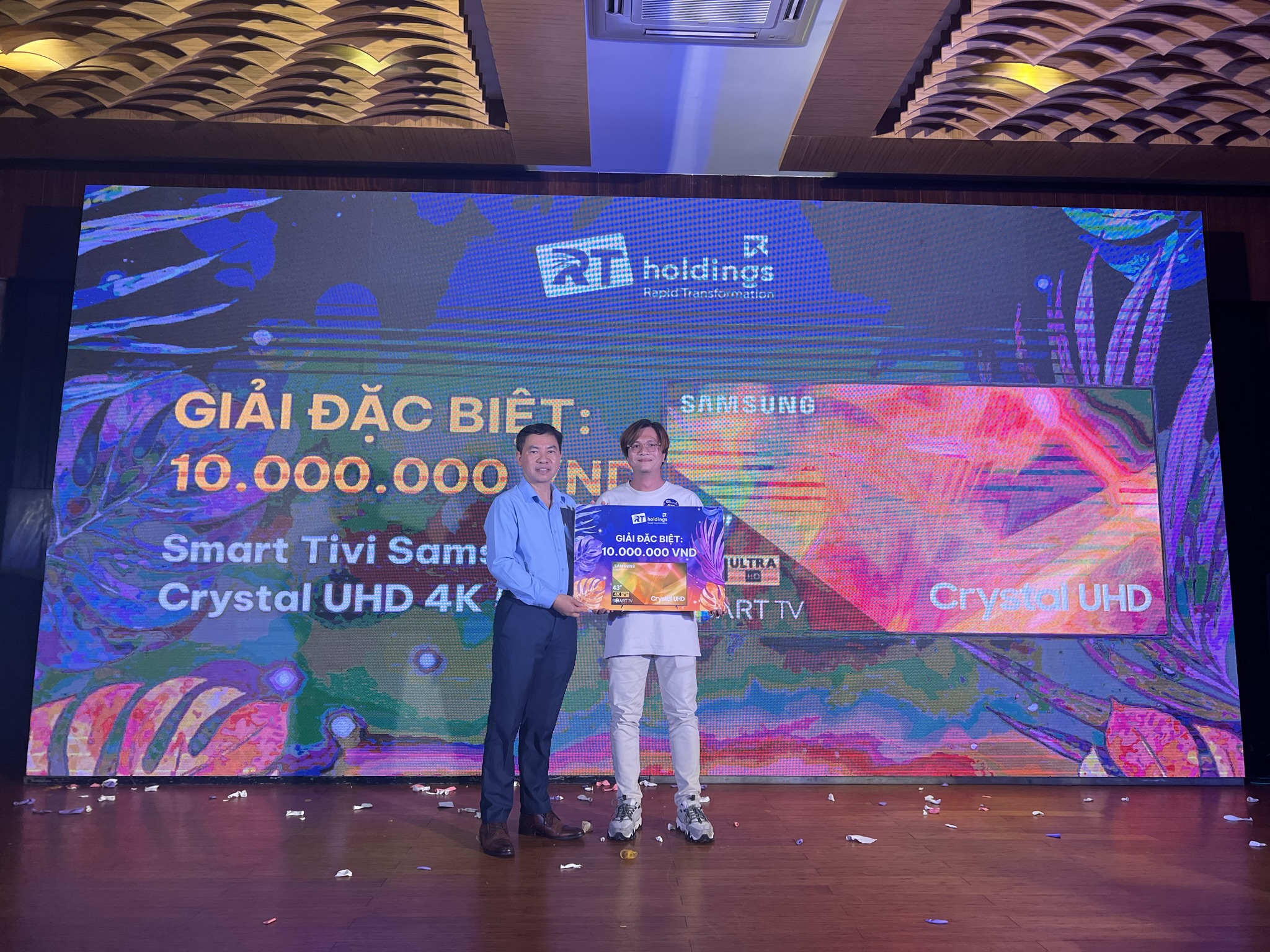 Bên cạnh đó, tại Gala Dinner, các thành viên của RT Holdings còn được tham gia quay số trúng thưởng với vô số phần quà hấp dẫn như: Tủ lạnh, Tivi, Máy lọc không khí,…và thưởng thức những tiết mục văn nghệ vui tươi, được chuẩn bị kỹ lưỡng đến từ các phòng ban của Hệ thống.