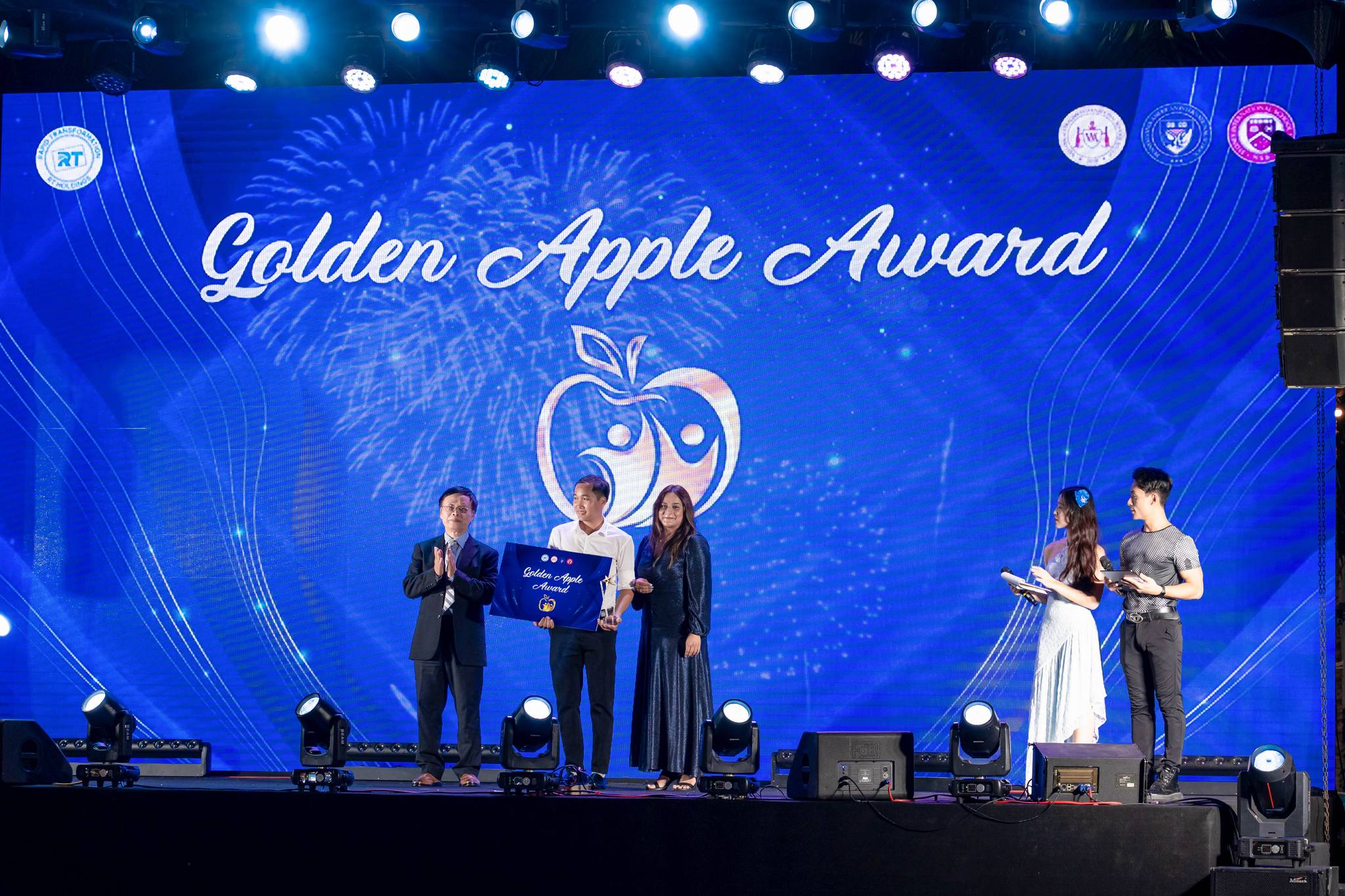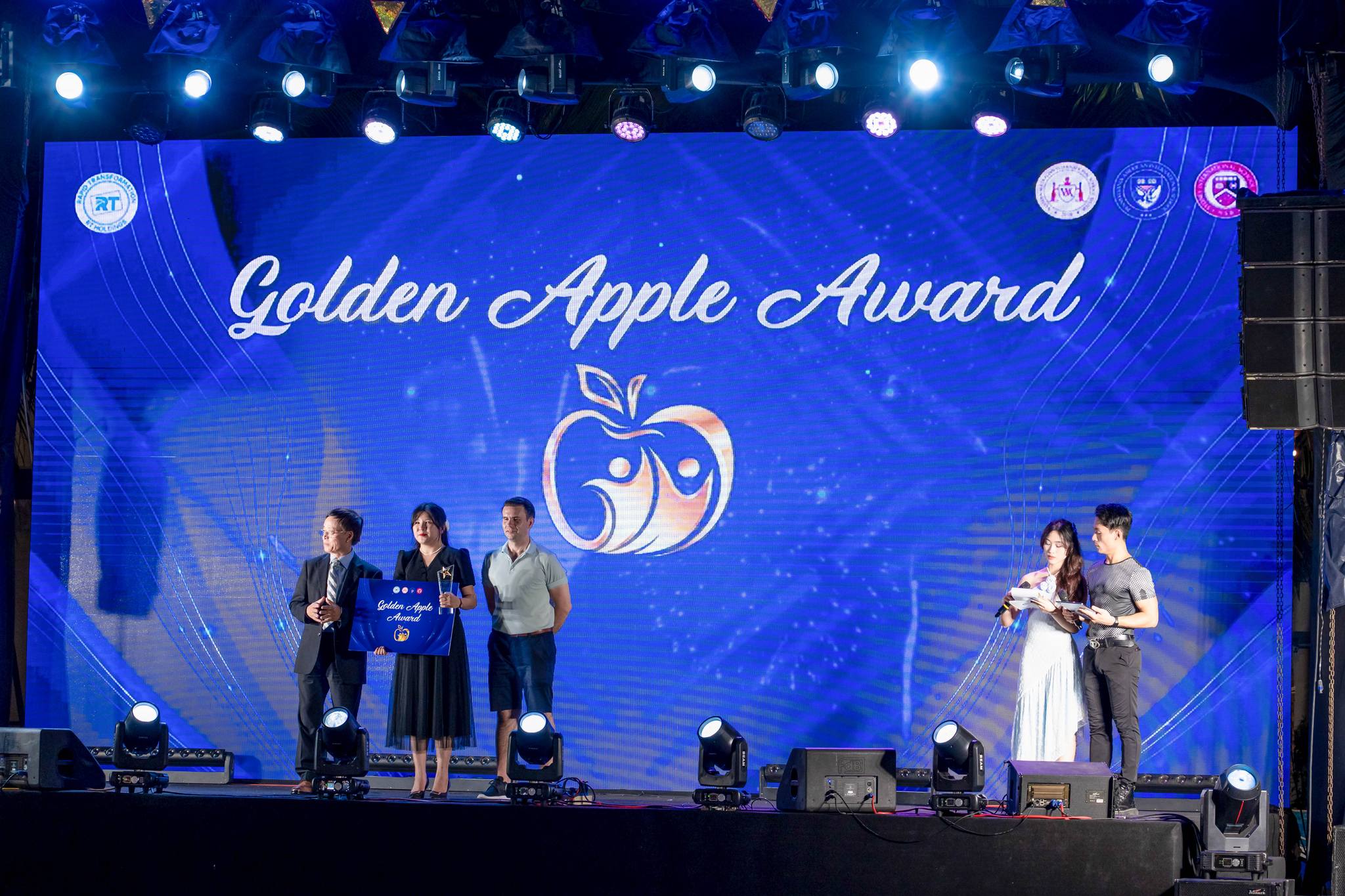 Đặc biệt nhất của Lễ Tổng kết năm học 2023 – 2024, danh hiệu “Golden Apple” được trao cho những Giáo viên không chỉ hoàn thành xuất sắc nhiệm vụ năm học, có nhiều hoạt động đóng góp đột phá trong công tác giảng dạy mà còn là người truyền ngọn lửa nhiệt thành cho các em học sinh, các đồng nghiệp dù ở bất kỳ hoạt động nào.